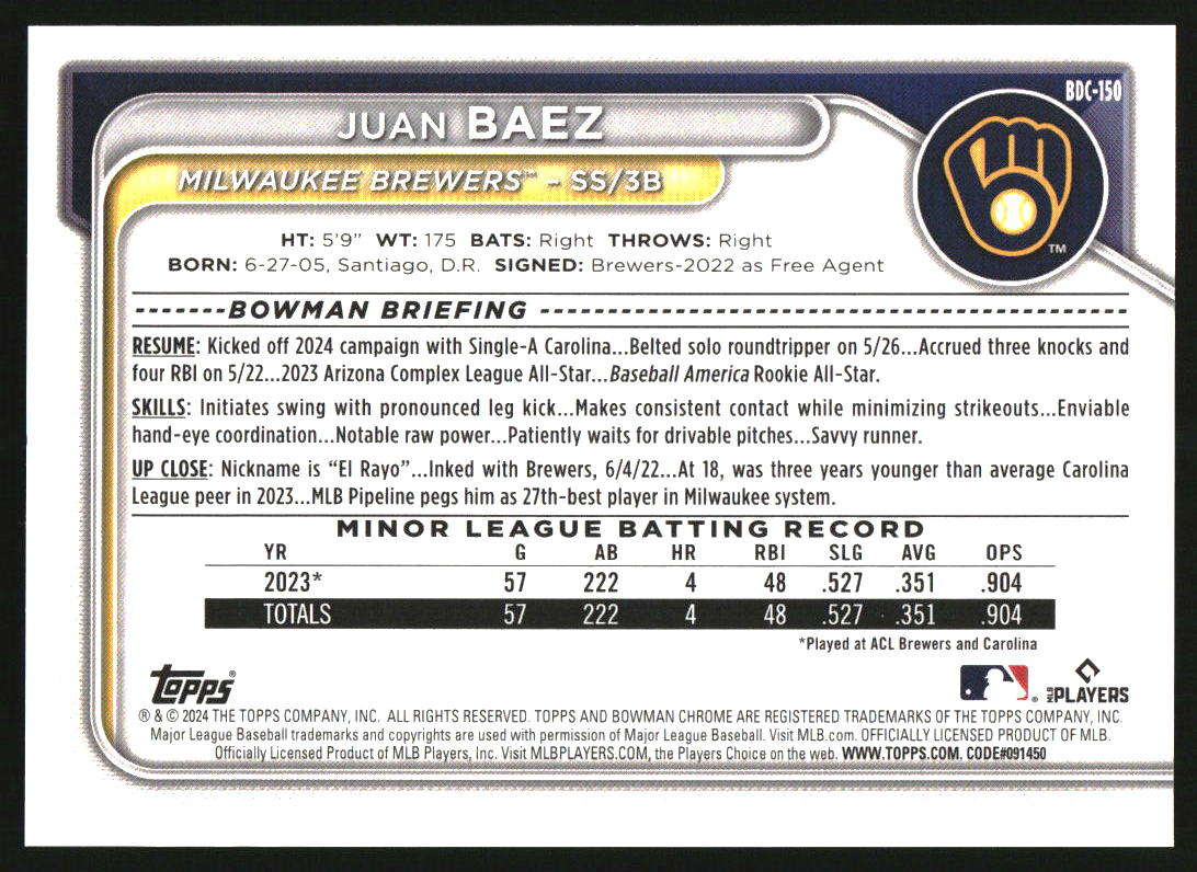 2024 Bowman Draft Sapphire Chrome Red Sapphire #BDC-150 Juan Baez /5