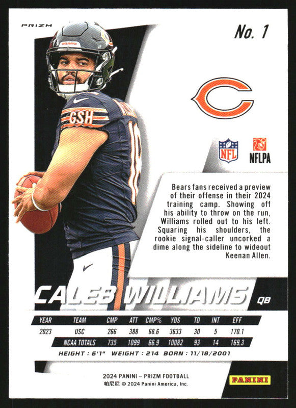 2024 Panini Prizm Flashback Rookie Silver Prizm #1 Caleb Williams RC