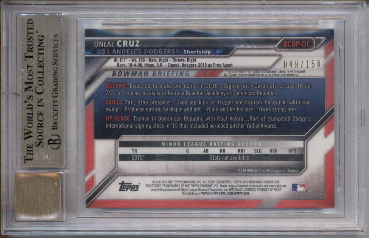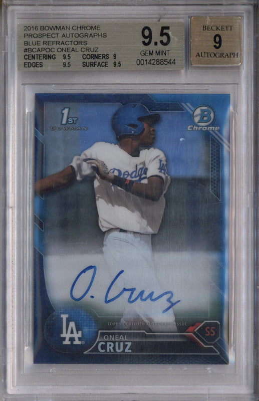 2016 Bowman Chrome Autographs Blue Refractors Oneal Cruz RC Auto /150 BGS 9.5