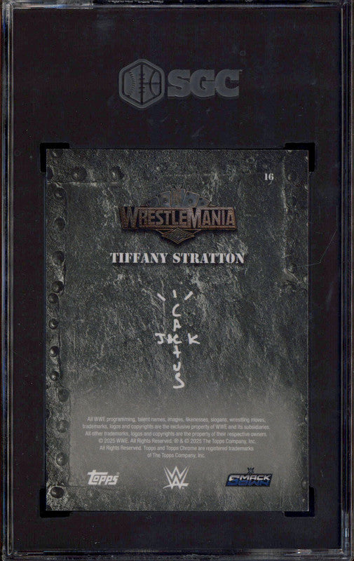 2025 Topps Chrome WWE Cactus Jack X Wrestlemania #16 Tiffany Stratton SGC 10