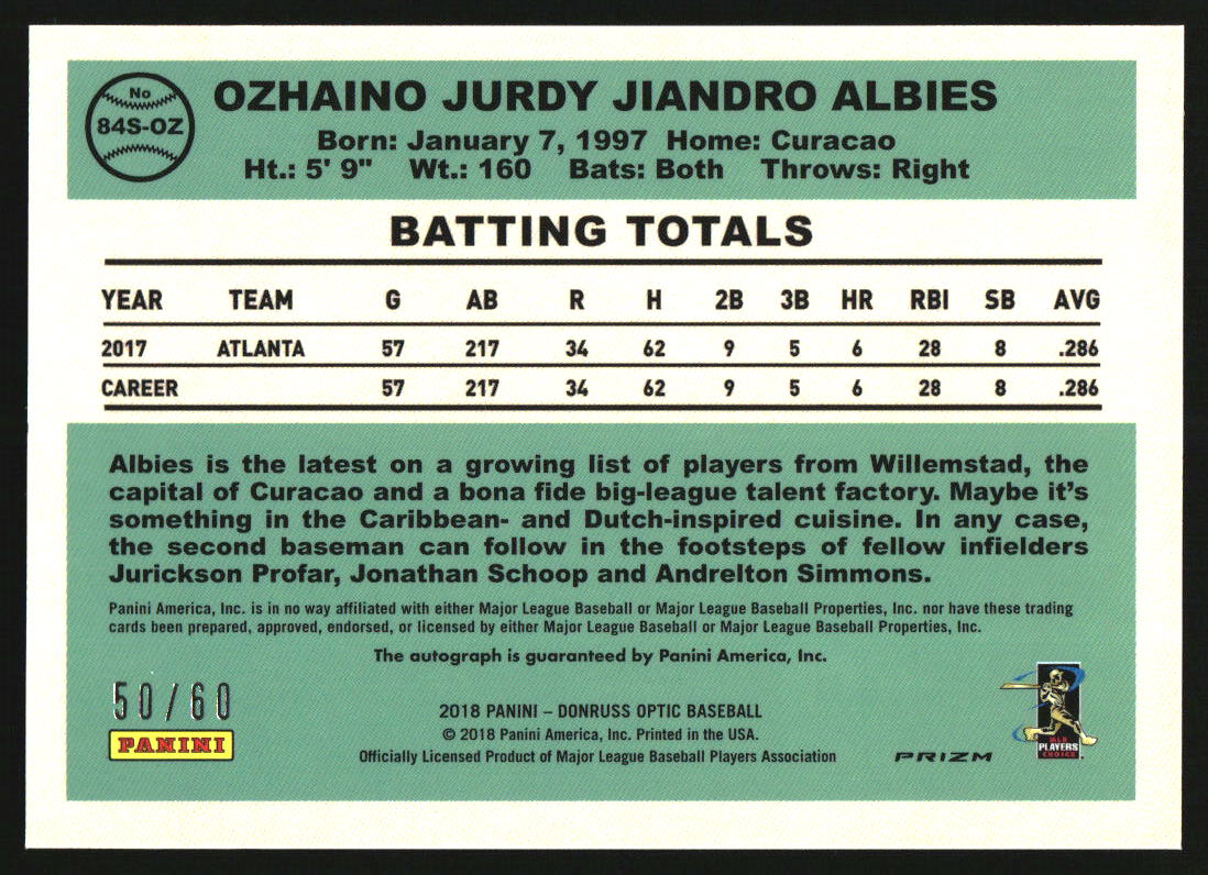 2018 Panini Donruss Optic Rated Rookie Retro 1984 Blue Ozzie Albies RC Auto /60