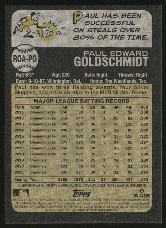 2022 Topps Heritage Real One Autographs #ROA-PG Paul Goldschmidt Autograph Auto