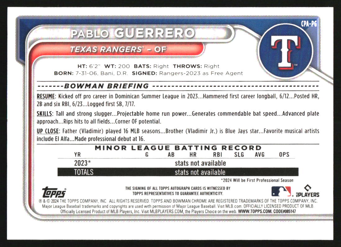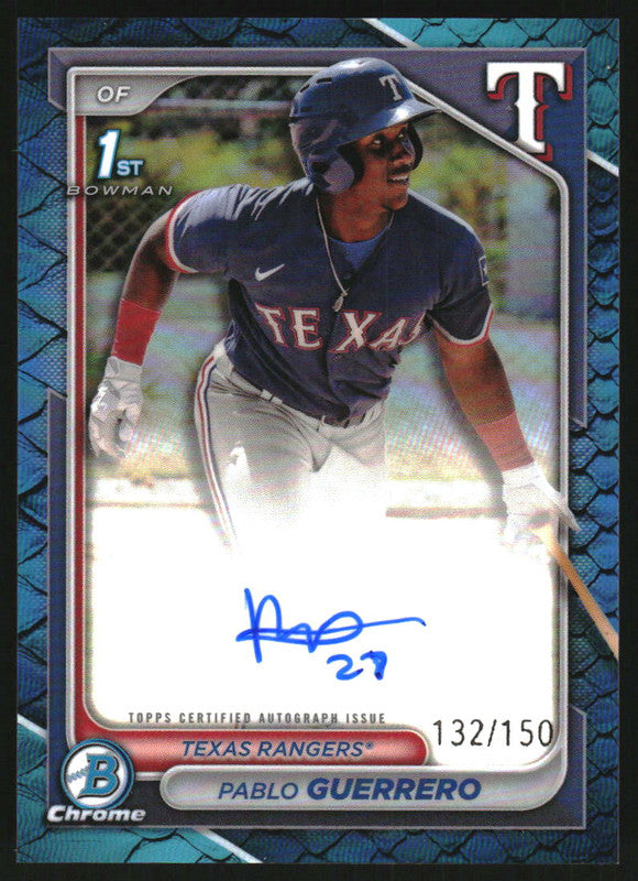 2024 Bowman Chrome Autographs Reptilian Blue #CPA-PG Pablo Guerrero RC Auto /150