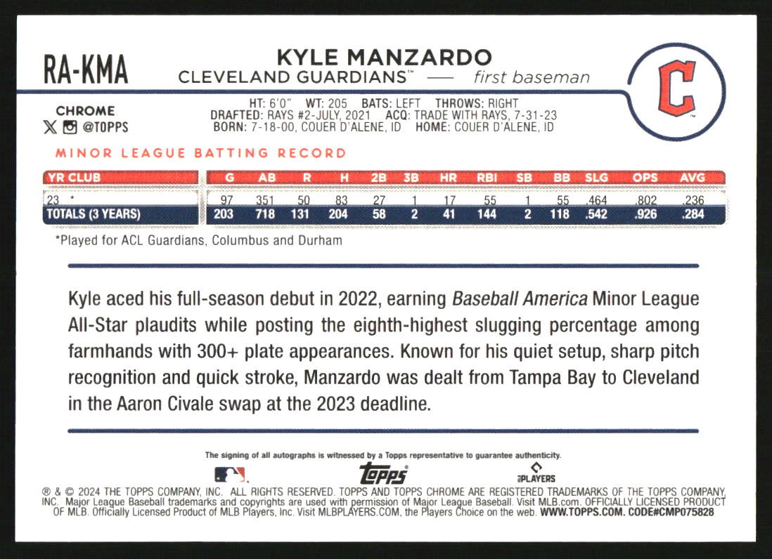 2024 Topps Chrome Update Purple Speckle #RA-KMA Kyle Manzardo RC Auto /299