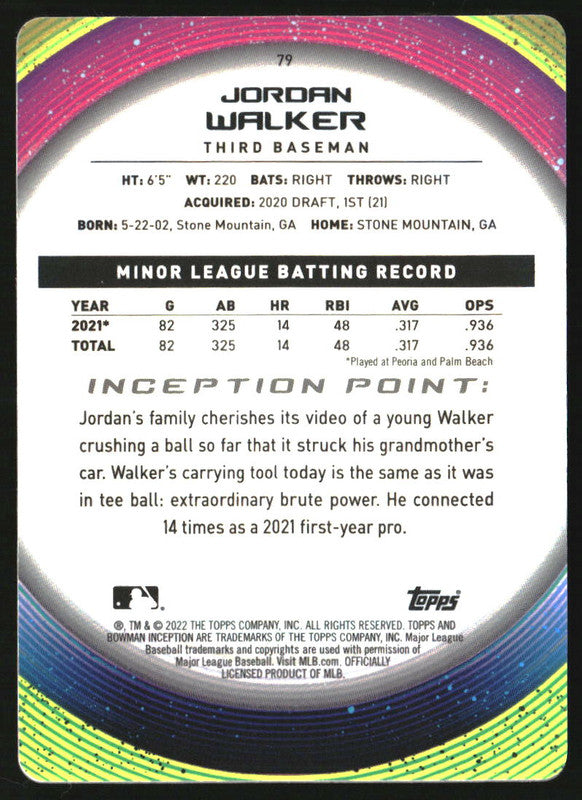 2022 Bowman Inception Printing Plate Magenta #79 Jordan Walker 1/1