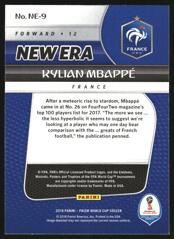 2018 Panini Prizm World Cup New Era #NE-9 Kylian Mbappe
