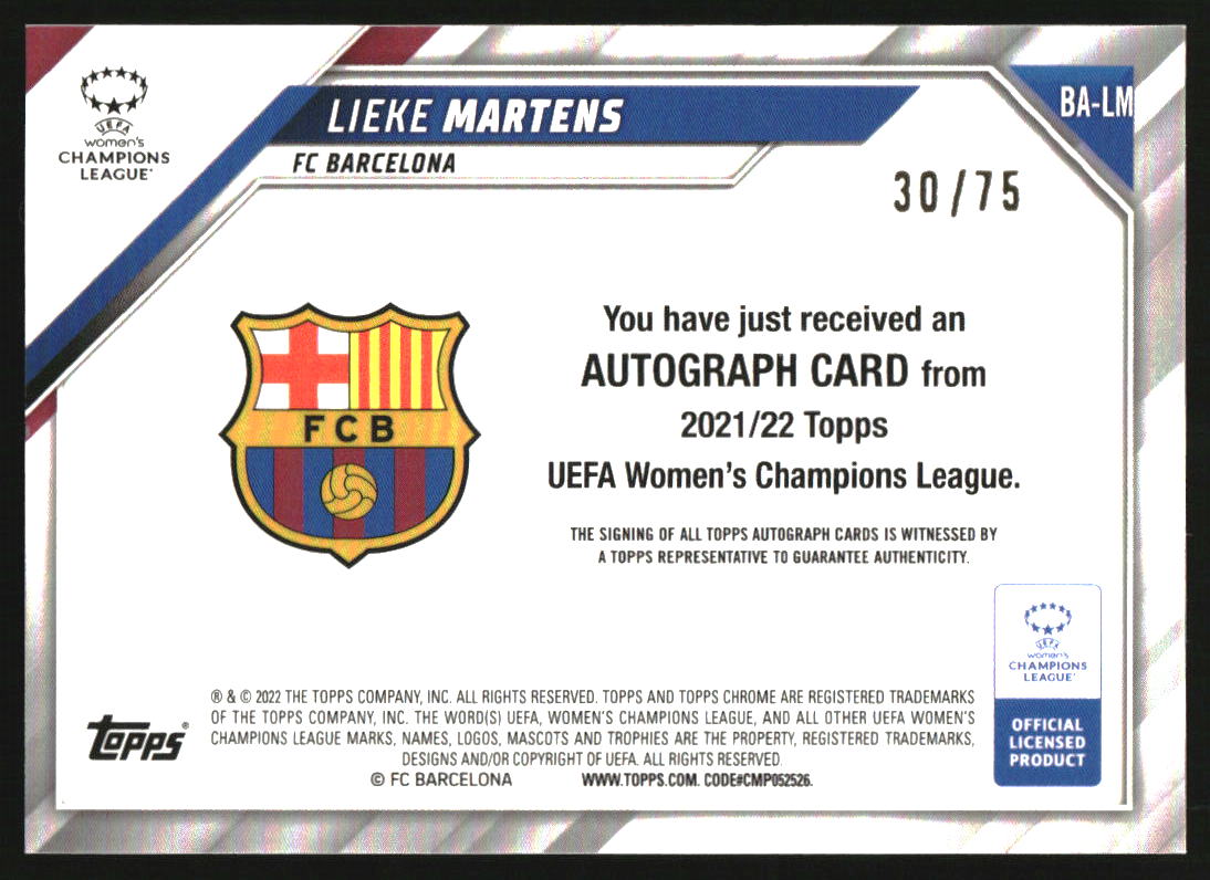 2021 Topps Chrome UEFA Women's Autographs Inferno #BA-LM Lieke Martens Auto /75