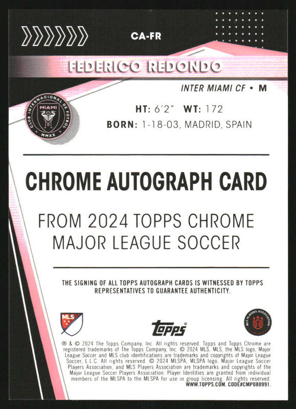 2024 Topps Chrome MLS Chrome Gold Refractor Federico Redondo Autograph Auto /50
