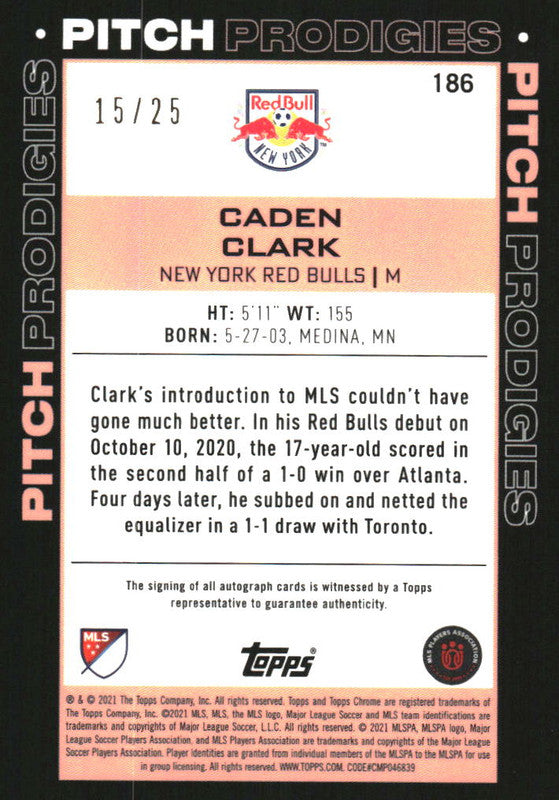 2021 Topps Chrome MLS Autographs Orange #186 Caden Clark Autograph Auto /25