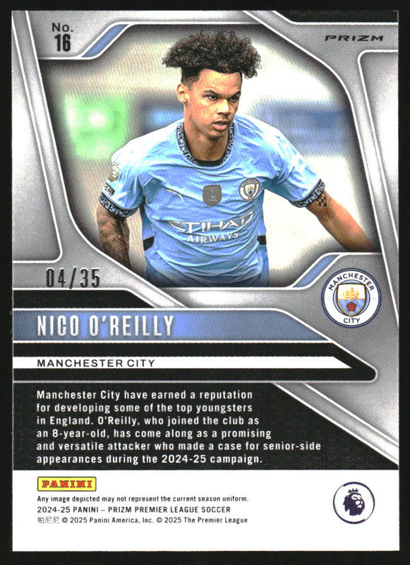 2024-25 Panini Prizm Premier League White Prizm #16 Nico O'Reilly RC /35