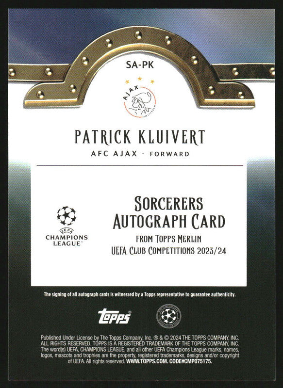 2023 Topps Chrome Merlin UEFA Sorcerers Orange #SA-PK Patrick Kluivert Auto /25