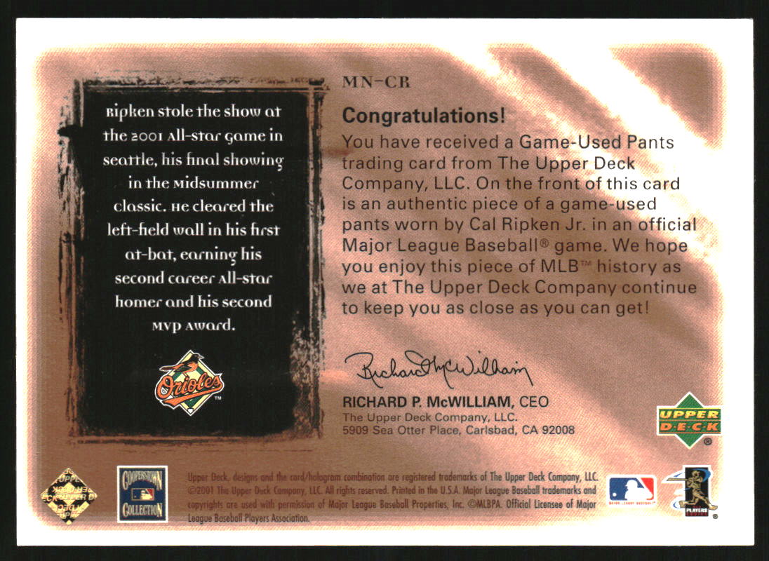 2001 Ultimate Collection Magic Numbers Game Jersey Copper Cal Ripken Jr. /24