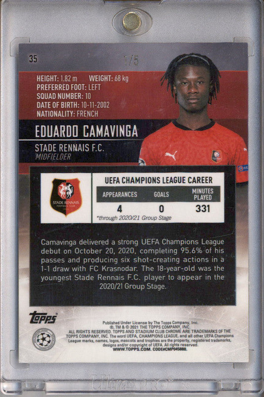 2020 Stadium Club Chrome UEFA Champions League Black #35 Eduardo Camavinga /5