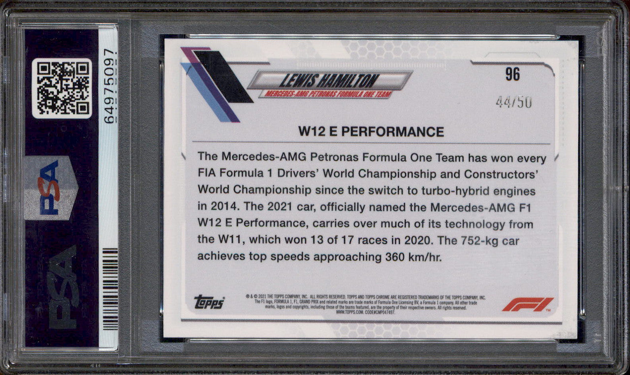 2021 Topps Chrome Formula 1 Gold Wave Refractor #96 Lewis Hamilton /50 PSA 9