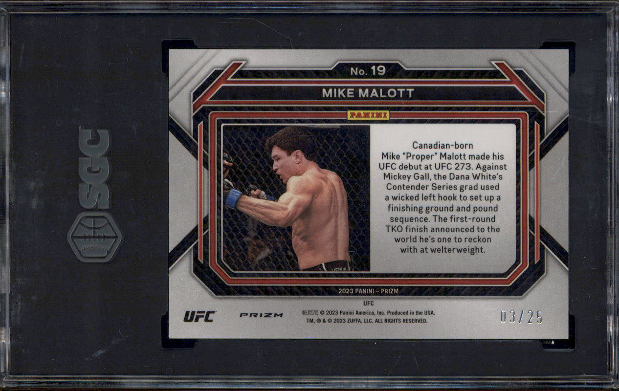 2023 Panini Prizm UFC Mojo Prizm #19 Mike Malott RC /25 SGC 9.5