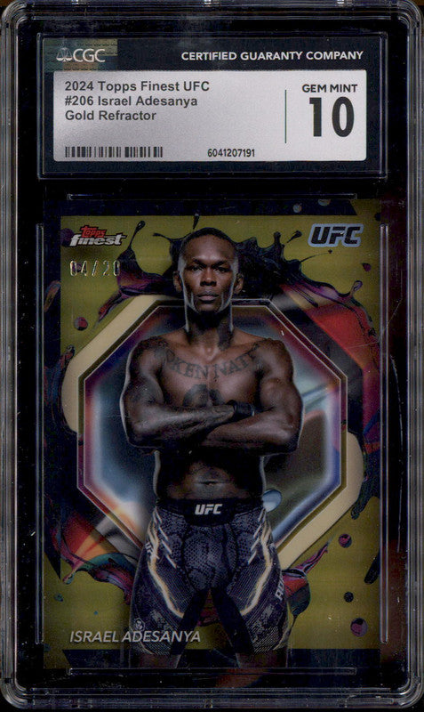 2024 Topps Finest UFC Gold Refractor #206 Israel Adesanya /20 CGC 10