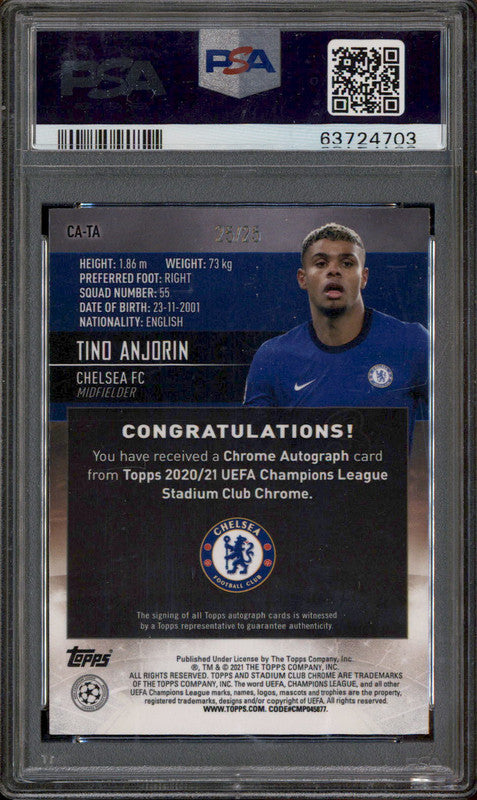 2020 Stadium Club Chrome Rookie Auto Orange Prism Tino Anjorin RC /25 PSA 8
