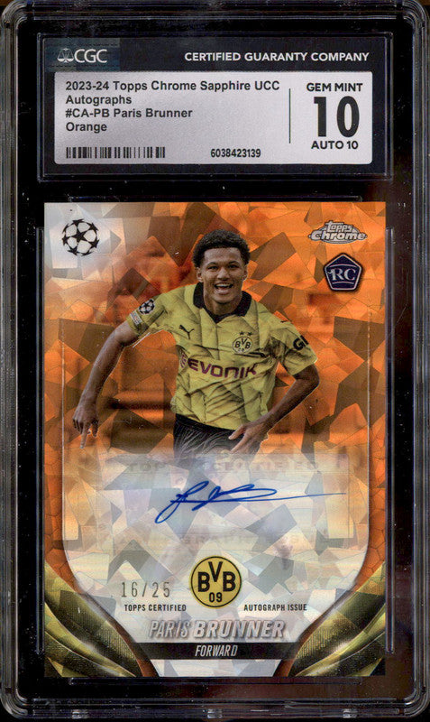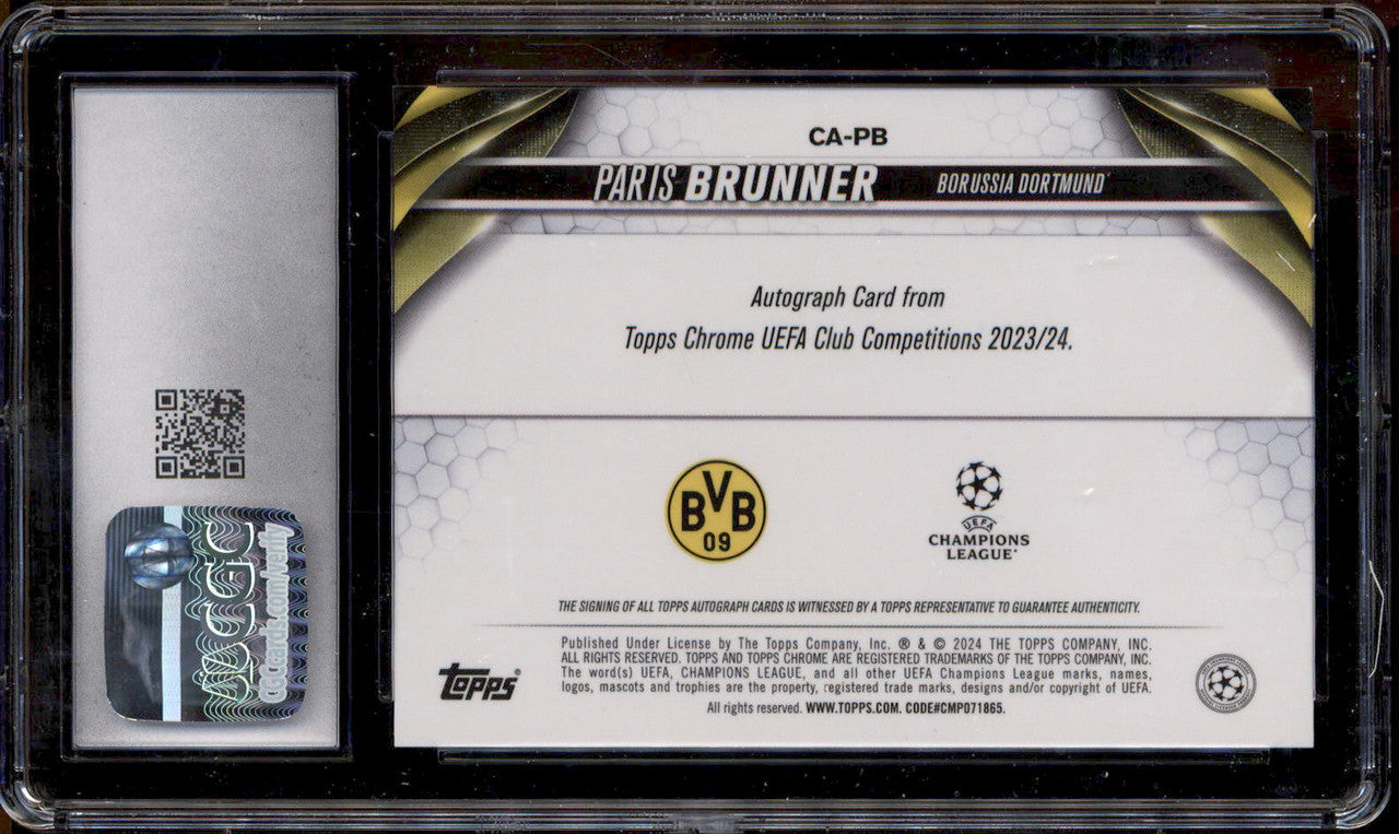 2023-24 Topps Chrome Sapphire UCC Auto Orange #CA-PB Paris Brunner RC /25 CGC 10