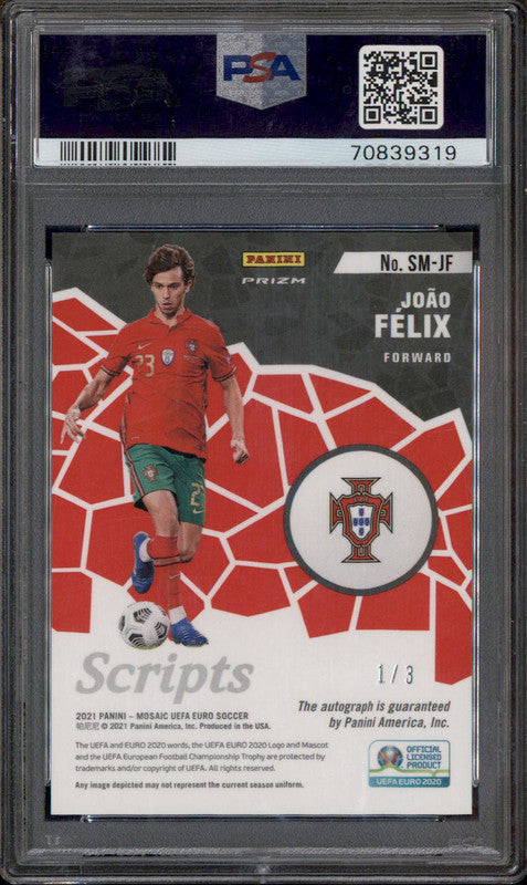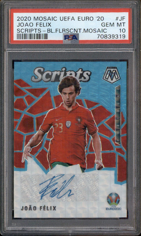 2020 Mosaic UEFA Euro Scripts Mosaic Blue Fluorescent Joao Felix Auto /3 PSA 10