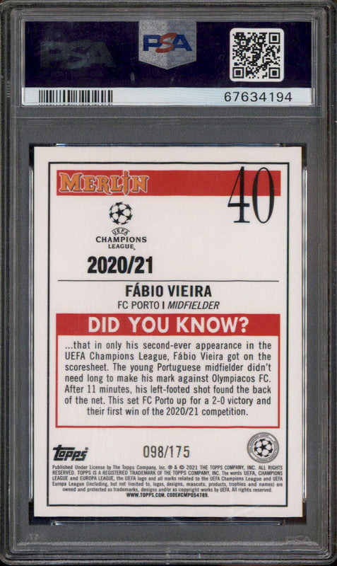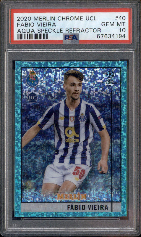 2020 Topps Merlin Champions League Aqua Speckle Fabio Vieira RC /175 PSA 10