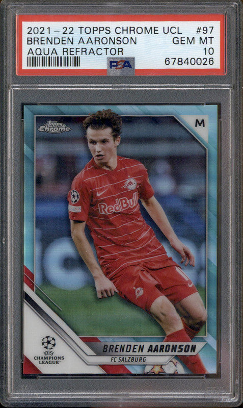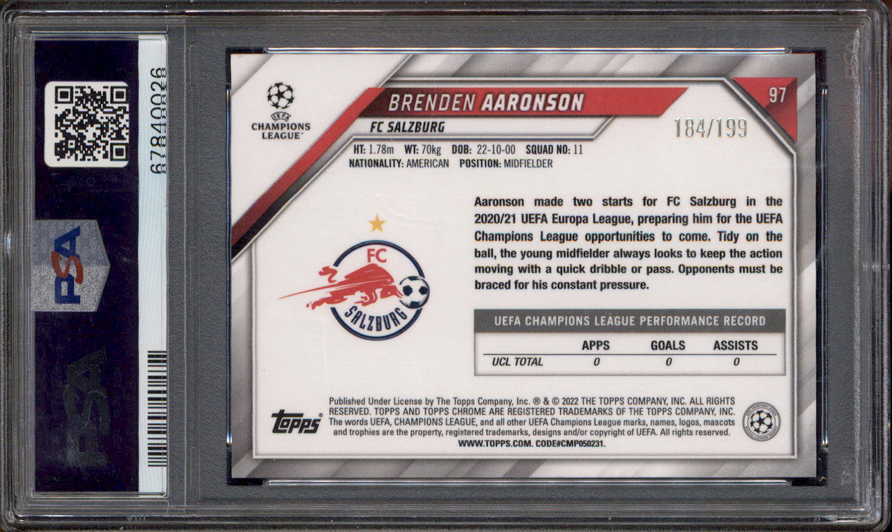 2021 Topps Chrome Champions League Aqua Refractor Brenden Aaronson /199 PSA 10