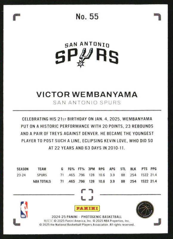 2024-25 Panini Photogenic Stardust #55 Victor Wembanyama /65