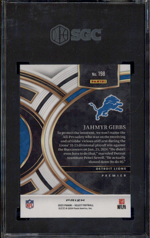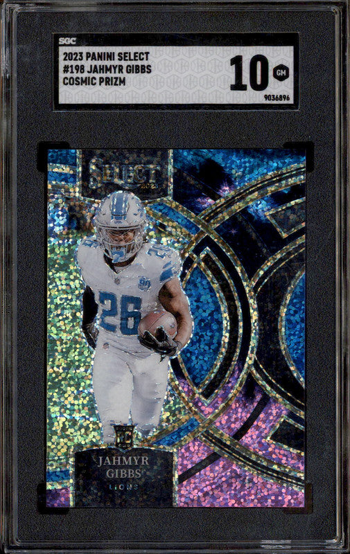 2023 Panini Select Cosmic Prizm #198 Jahmyr Gibbs RC SGC 10