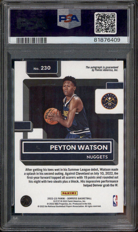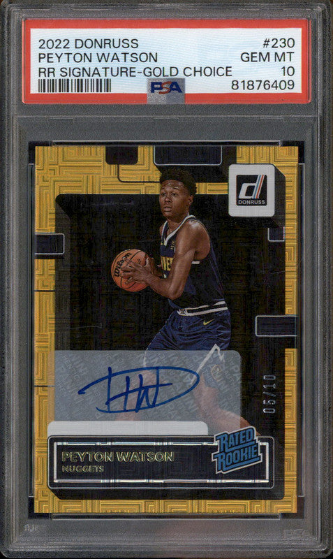 2022 Donruss Rookie Signature Gold Choice #230 Peyton Watson RC Auto /10 PSA 10