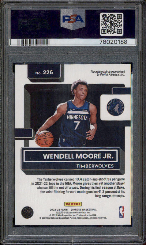 2022 Donruss Rookie Signature Black Choice Wendell Moore Jr RC Auto 1/1 PSA 10