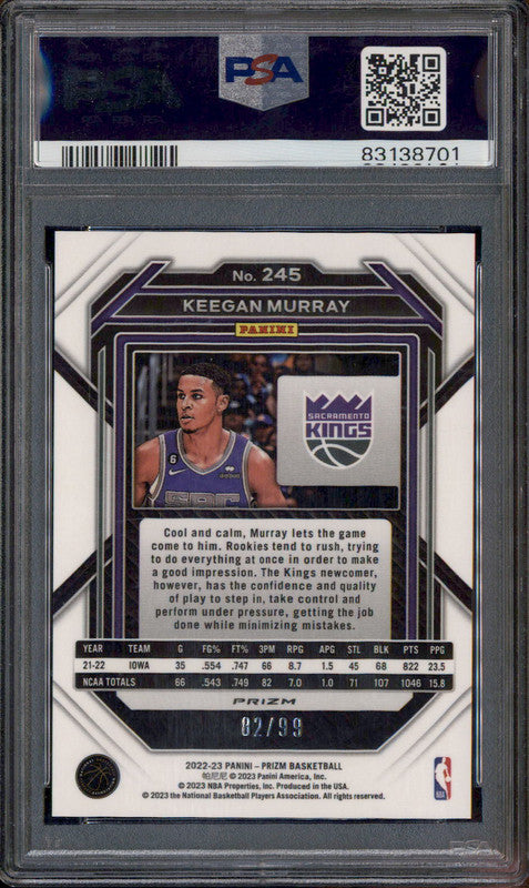 2022 Panini Prizm Purple Prizm #245 Keegan Murray RC /99 PSA 10
