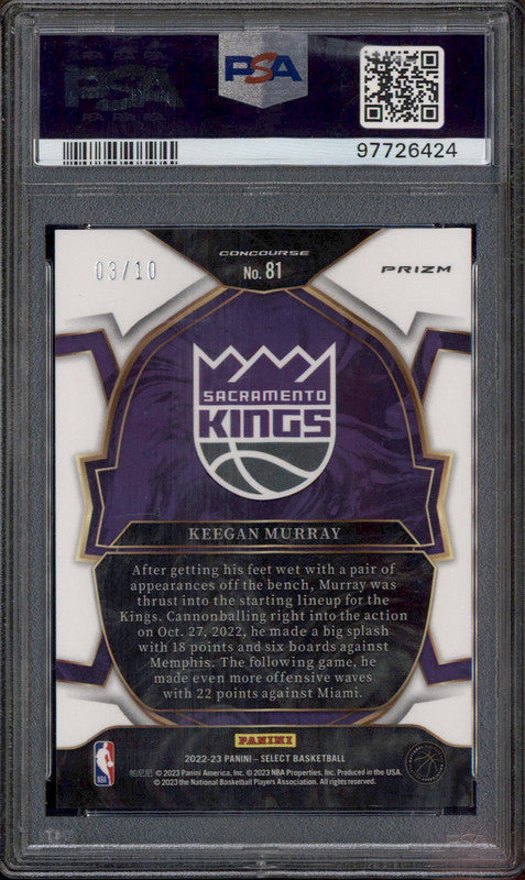 2022 Panini Select Gold Cracked Ice #81 Keegan Murray RC /10 PSA 10
