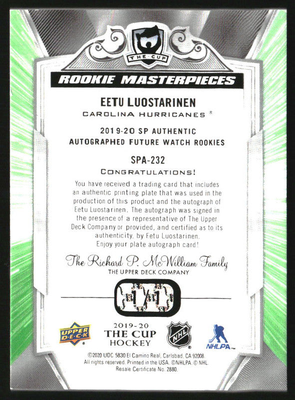 2019 The Cup SP Authentic Printing Plates Magenta Eetu Luostarinen RC Auto 1/1