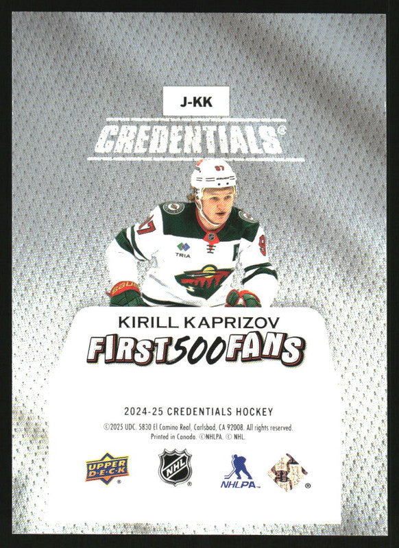2024-25 Upper Deck Credentials Jersey #J-KK Kirill Kaprizov