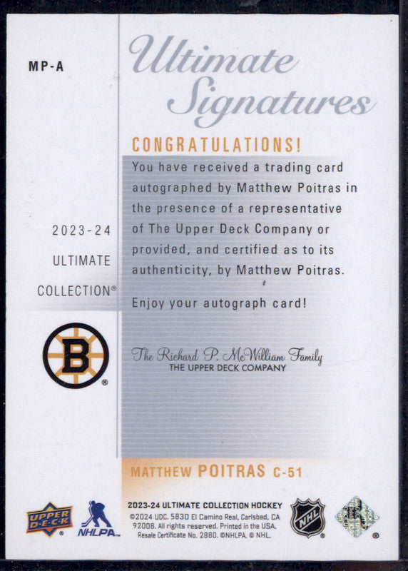2023 Ultimate Collection 2003 04 Retro Signatures #MP-A Matthew Poitras Auto /65