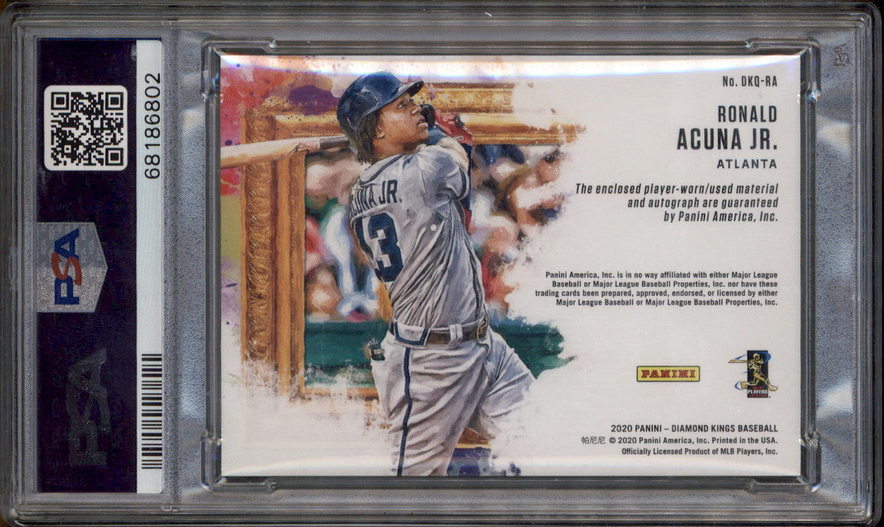 2020 Diamond Kings Quad Materials Auto Holo Blue Ronald Acuna Jr. /25 PSA 7