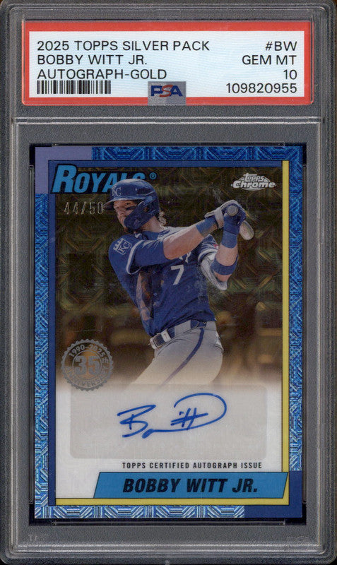 2025 Topps Silver Pack 1990 Chrome Promo Auto Gold #BW Bobby Witt Jr. /50 PSA 10