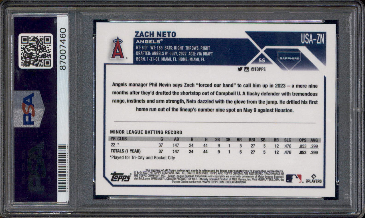 2023 Topps Chrome Update Sapphire Edition Auto Gold #ZN Zach Neto RC /50 PSA 10