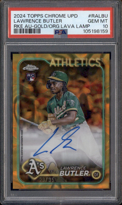 2024 Topps Chrome Gold Orange Lava Lamp Lawrence Butler RC Auto /35 PSA 10