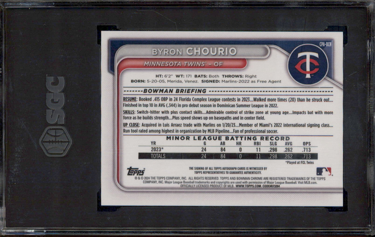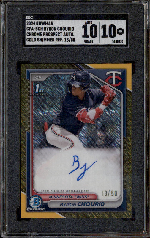 2024 Bowman Chrome Rookie Auto Gold Shimmer #CPA-BCH Byron Chourio RC /50 SGC 10
