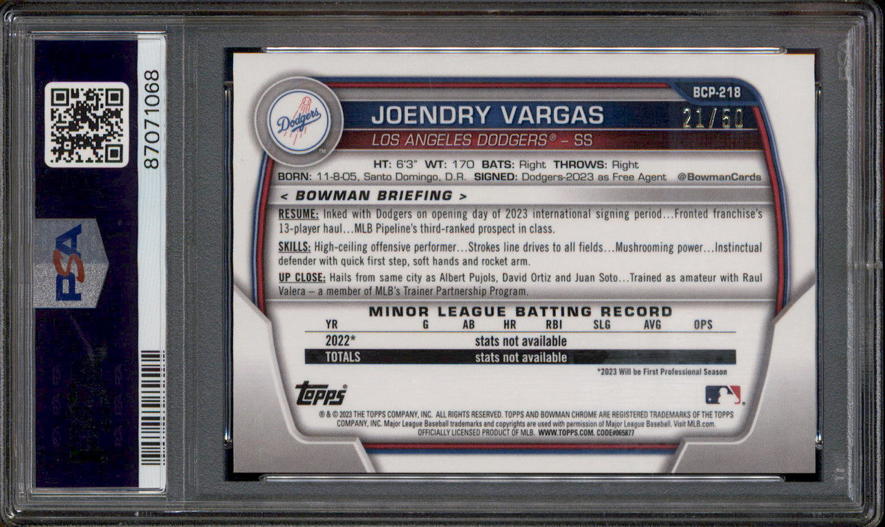 2023 Bowman Chrome Prospects Gold Shimmer #BCP218 Joendry Vargas RC /50 PSA 9