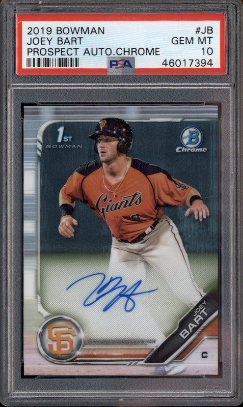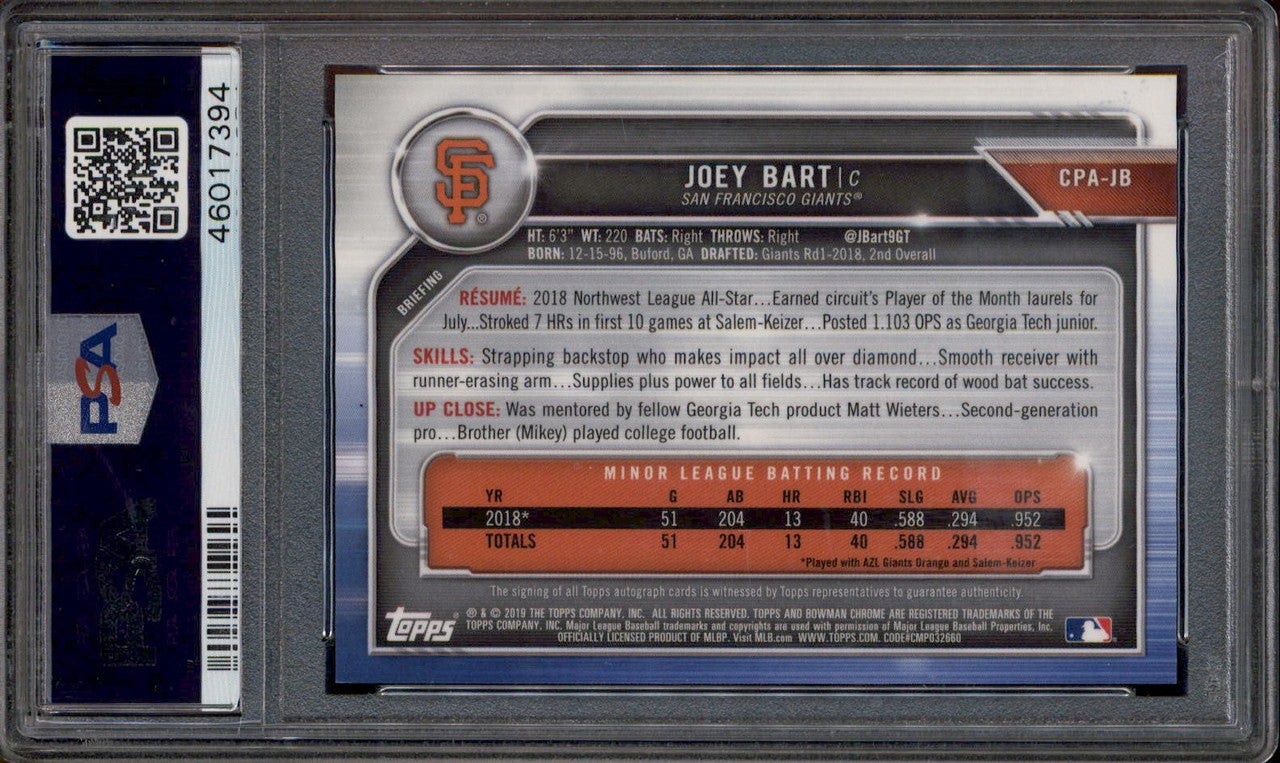 2019 Bowman Chrome Prospect Autograph #JB Joey Bart RC Auto PSA 10
