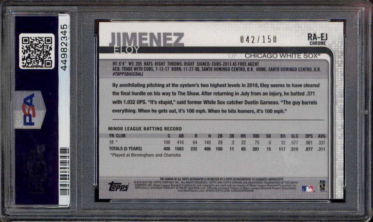 2019 Topps Chrome Rookie Autograph Blue Wave Eloy Jimenez RC Auto /150 PSA 10