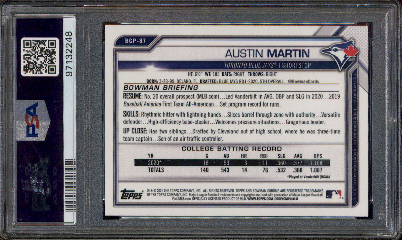 2021 Bowman Chrome Atomic Refractor #BCP87 Austin Martin RC PSA 10