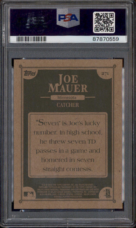 2002 Topps 206 #271 Joe Mauer RC PSA 10
