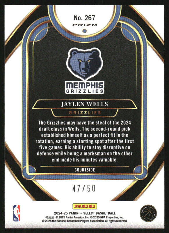 2024-25 Panini Select Courtside Green Wave Prizm #267 Jaylen Wells RC /50