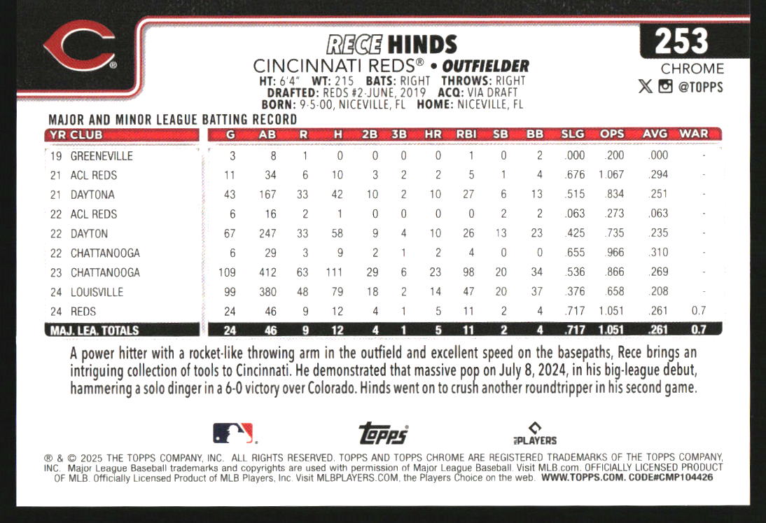 2025 Topps Chrome Gold Wave Refractor #253 Rece Hinds RC /50