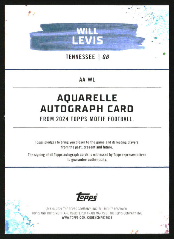 2023 Topps Motif Aquarelle Autographs Pyrrol Scarlet #AA-WL Will Levis Auto /5