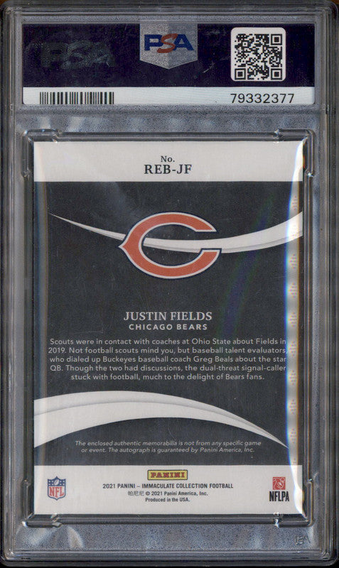 2021 Immaculate Rookie Eye Black Jersey Metallic Justin Fields RC Auto /10 PSA 9