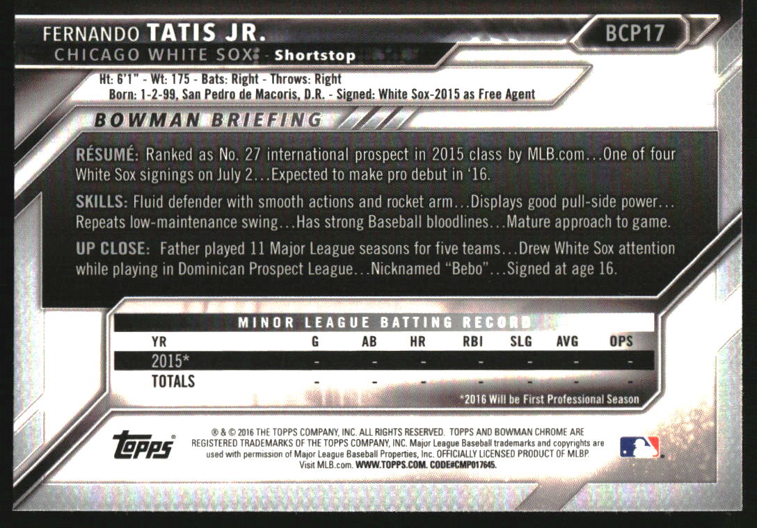 2016 Bowman Chrome Prospects #BCP17 Fernando Tatis Jr. RC