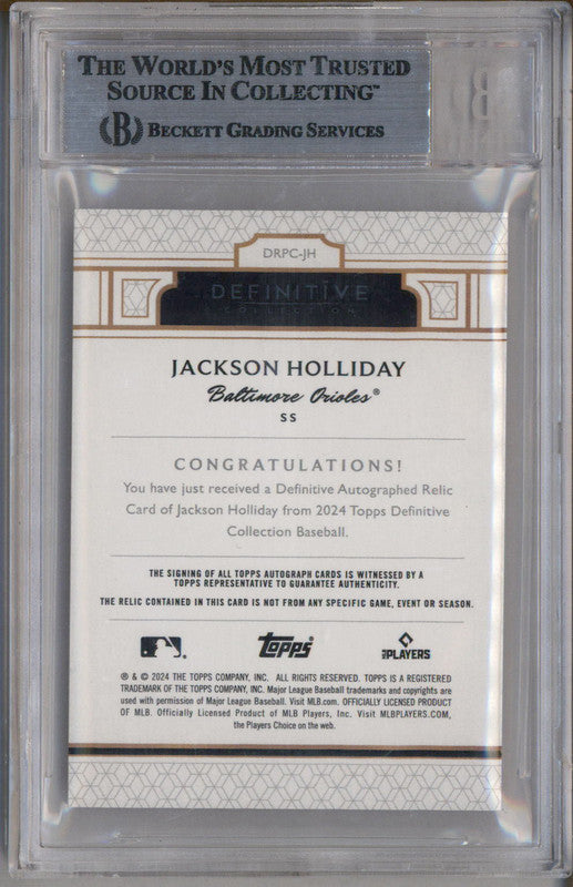 2024 Topps Definitive Rookie Patch Auto Purple Jackson Holliday RC /10 BGS 9